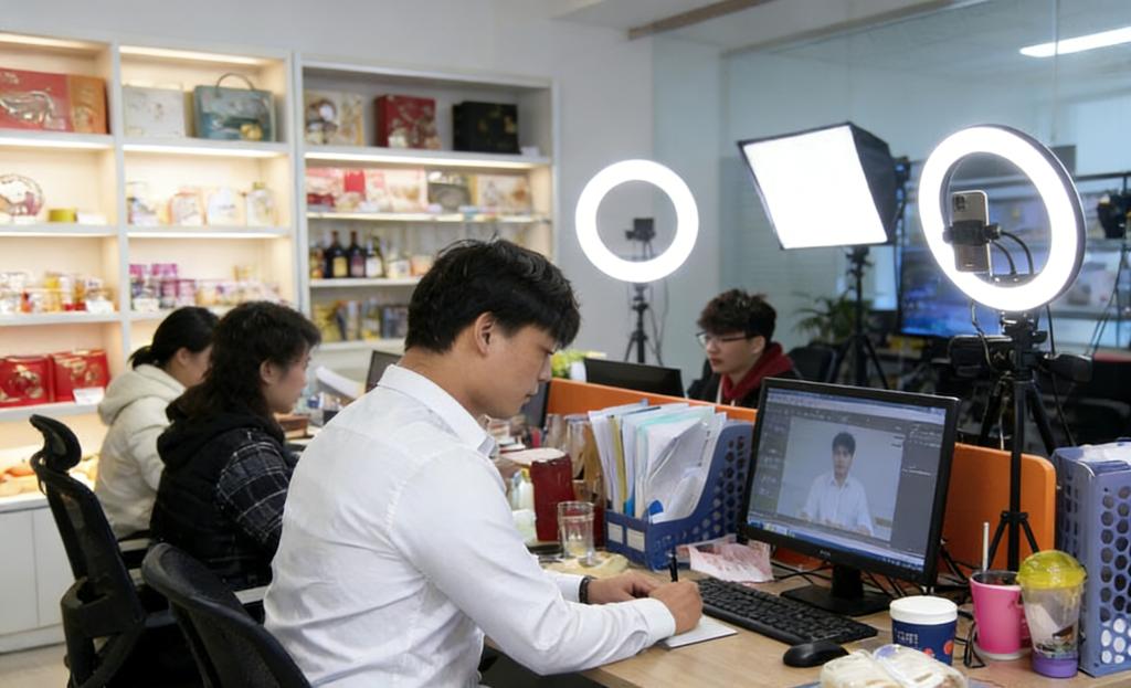 王新宇在电商直播基地办公