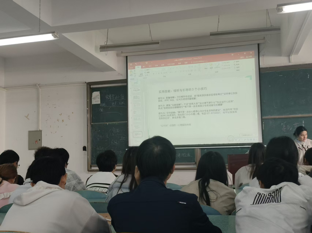 培训开篇,方老师重点阐释了学生心理工作者——“心理委员”和“大学生心理协会成员”的角色定位与协作逻辑,让“双向流动服务机制”成为心理健康高效服务的核心抓手。心理委员、心协成员及宿舍长需主动下沉班级、宿舍,通过“日常谈心+定期摸排”建立常态化心理动态收集渠道,实时掌握同学情绪变化。让心理关怀如活水循环,既拉近距离又提升服务精准度。