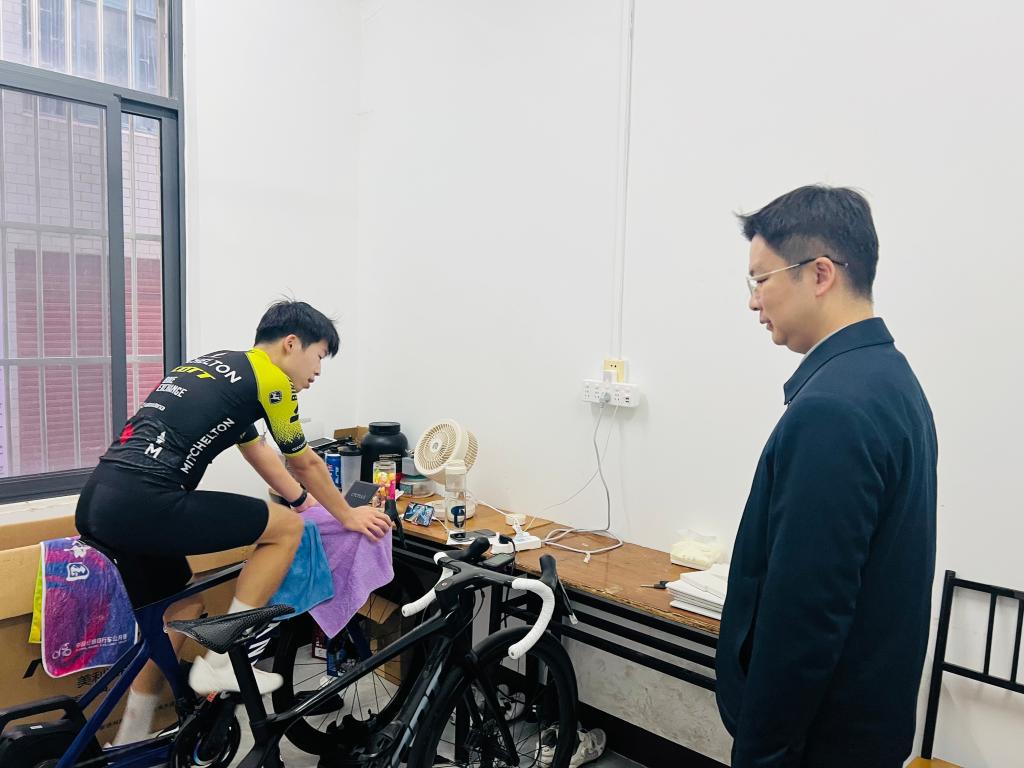 走进社团活动室,骑行社的同学正在健身设备上练习。夏院长驻足观看,对同学刻苦锻炼给予肯定。他指出,社团是“第二课堂”的重要载体,要持续深化“社团+项目”改革,打造一批具有轻工特色的品牌社团,团委要积极支持学生社团建设,希望社团成员在湖北省大学生各项运动赛事中取得佳绩。
